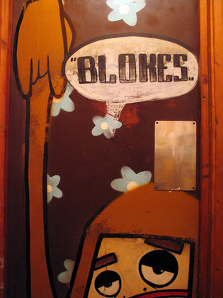 Notes:Door to the men's bathroom; image is slightly cropped. Couldn't get a pic of the Ladies room door.